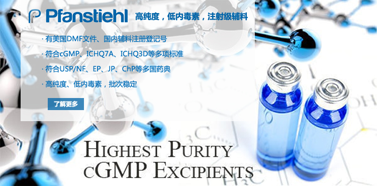 “熱烈祝賀Pfanstiehl的注射級甘氨酸Glycine(G-140)喜獲CDE登記號F20250000403, 這是Pfanstiehl產品獲得的第18個CDE登記號!”甘氨酸在醫藥輔料制劑中應用廣泛,, 可作為緩沖劑,增溶劑,穩定劑等,具有諸多優勢。Pfanstiehl秉承一貫高品質理念,為滿足全球生物制藥行業對于高品質甘氨酸的需求,隆重推出的注射級甘氨酸Glycine (G-140), 具有超高純度,超低內毒素,超低金屬殘留的特點,單獨檢測29種金屬離子,并且新增DNA,RNA,DNA酶,RNA酶和脂肪酶,亞硝酸鹽等多項質量指標的檢測,符合多國藥典規定(USP, EP, BP, JPE, ChP),可用于生物治療性藥物和疫苗的生產。產品信息:· 產品名稱:Glycine, High Purity, Low Endotoxin, Low Metals, USP, EP, BP, JPE, ChP (G-140)· 中文名稱:甘氨酸· 分子式:C2H5NO2· 分子量:75.07 g / mol· CAS號:56-40-6· 產品貨號:G-140產品特點: · 超高純度,超低內毒素,超低微生物含量,超低金屬雜質殘留· 質量指標新增DNA,RNA,DNA酶,RNA酶,脂肪酶和亞硝酸鹽檢測· 符合多國藥典:USP, EP, BP, JPE, ChP· 符合ICH Q3D標準· 符合GMP標準· 已獲DMF和CDE登記號 產品應用:· 緩沖劑· 穩定劑· 增溶劑如果您對Pfanstiehl注射級別Glycine G-140感興趣,歡迎聯系Pfanstiehl 中國區代理商北京西美杰科技有限公司獲得如下詳細的產品概況說明文件和測試樣品。Pfanstiehl Inc.最新產品系列如下,歡迎聯系北京西美杰科技有限公司獲取100g裝免費樣品。北京西美杰科技有限公司為Pfanstiehl中國代理,為客戶提供完善的技術支持與售后服務。歡迎撥打西美杰客服電話400-050-4006或者登陸網站www_xmjsci_com.liguhy.com了解更多信息。 更多>